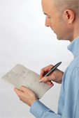 2.) Das Konsekutivdolmetschen ist die älteste Dolmetschart. Die Verdolmetschung erfolgt zeitversetzt (= konsekutiv), das heißt, der Dolmetscher macht sich während des Vortrags mit Hilfe seiner speziell zu diesem Zwecke individuell erarbeiteten Notizentechnik (Notation) Aufzeichnungen und produziert anschließend den zielsprachlichen Text, also beispielsweise von der Ausgangssprache deutsch in die Zielsprache niederländisch. Die zielsprachliche Fassung sollte beim Konsekutivdolmetschen gestrafft und besonders gut strukturiert sein, um die Zuhörer zu entlasten, da diese Dolmetschart die Vortragszeit nicht unerhebllich verlängert. |